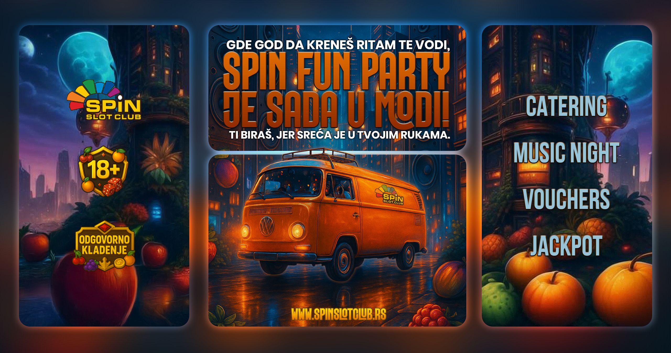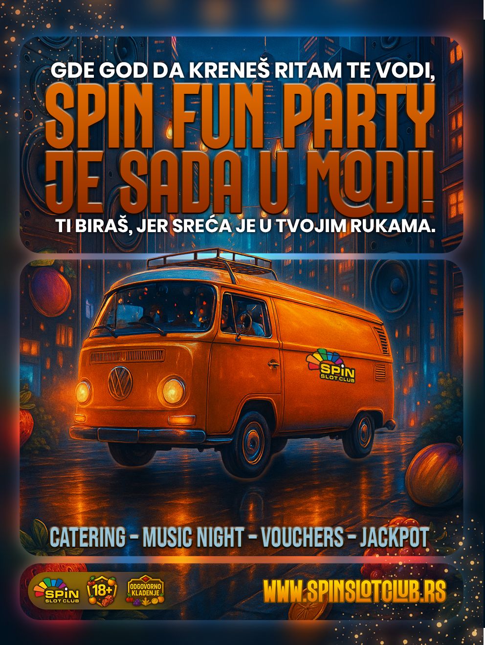 Gde god da kreneš, ritam te vodi. Spin Fun Party je spoj zabave, muzike, jackpota i iznenađenja. Dođi i oseti pravi talas energije u Spin Slot Clubovima.